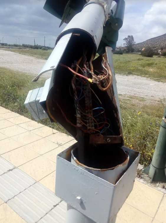 Χθεσινές φωτογραφίες από τη Λ. Ποσειδώνος στο ύψος του μαγαζιού “Ακρωτήρι”. Ο αέρας δεν λυπήθηκε τους σάπιους ιστούς των σηματοδοτών τονίζει ο αναγνώστης;