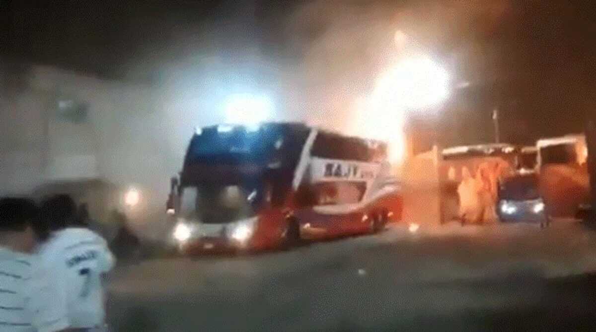 Momento exacto del incendio del Sajy Bus que acabó con la vida de 20 personas en el terminal Fiori. El vehículo partía de Lima con destino #Chiclayo pic.twitter.com/MH3RQp7cd0