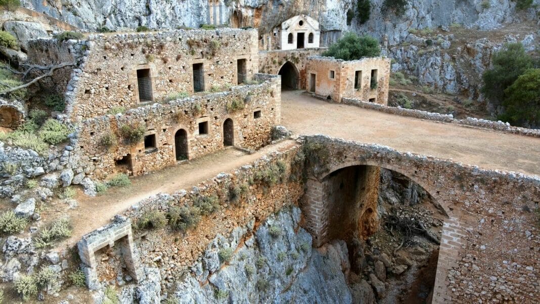 Στη συνέχεια της διαδρομής το μονοπάτι γίνεται πιο δύσκολο και το τοπίο πιο άγριο. Μετά από άλλα 10 λεπτά περπάτημα συναντάμε το εγκαταλελειμμένο Καθολικό Μοναστήρι με τον υπόσκαφο ναό του Αγίου Ιωάννη του Ερημίτη που έζησε μέσα σε αυτό το όμορφο σπήλαιο τον 14ο αιώνα. Το σπήλαιο μήκους 151 μέτρων είναι διακοσμημένο με σταλαγμίτες και σταλακτίτες. Το μοναστήρι είναι χτισμένο ανάμεσα στις δύο άκρες του φαραγγιού, που ενώνονται με ένα όμορφο μονότοξο γεφύρι.
