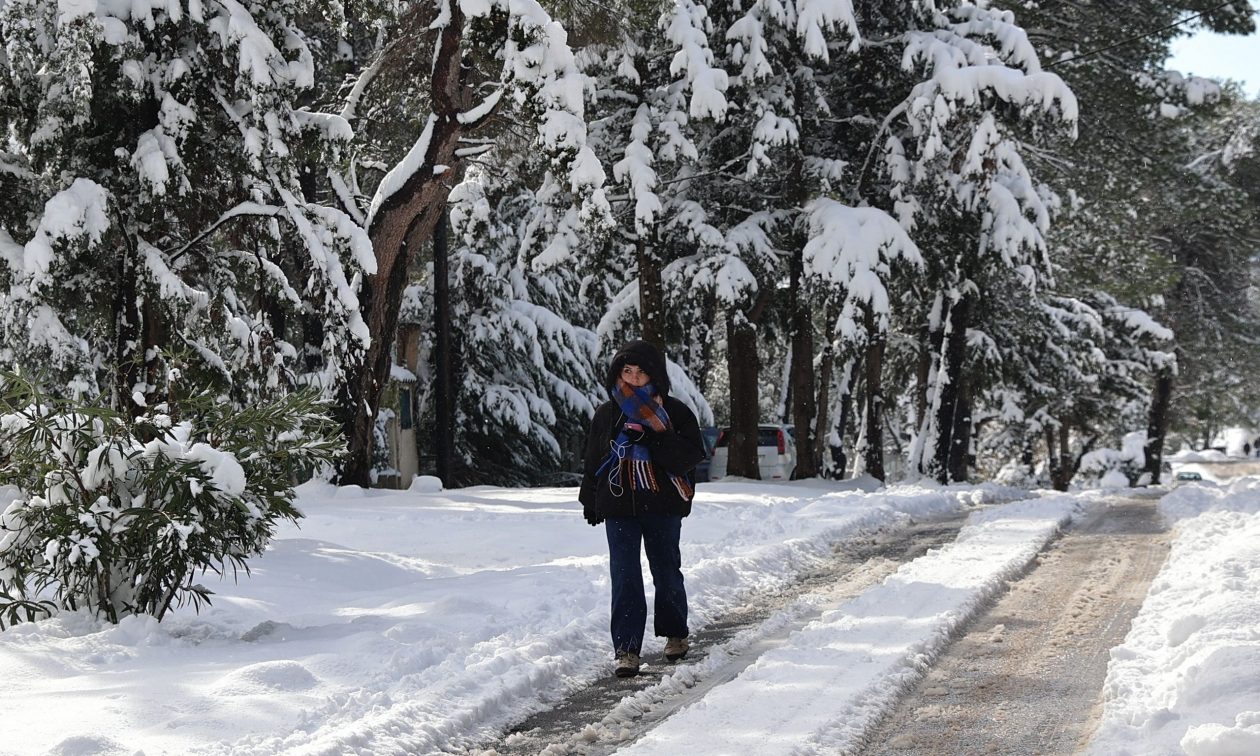 Το χιόνι που πέφτει πυκνό σε πολλές περιοχές της Κεντρικής και Βόρειας Ελλάδας άρχισε να κατεβαίνει και πιο νότια.