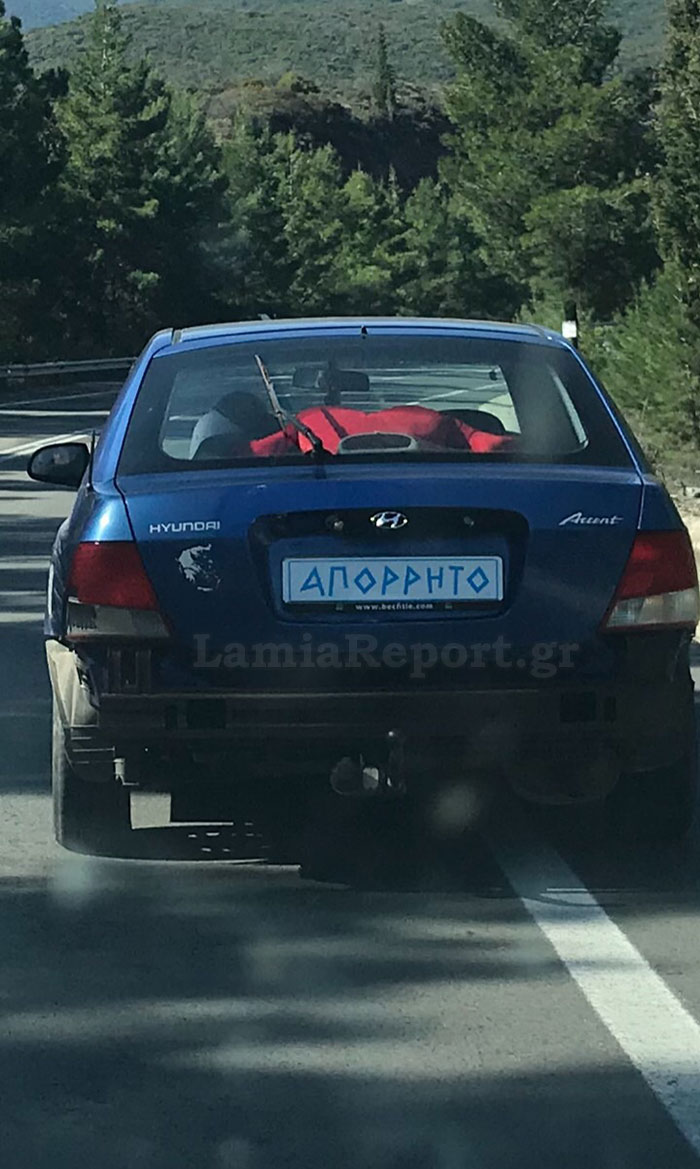 Το συγκεκριμένο αυτοκίνητο εντοπίστηκε πρόσφατα στην ε.ο. Λιβαδειάς – Αράχοβας. Ο οδηγός του προτιμά να κρατά απόρρητο (!) το… δημόσιο αριθμό κυκλοφορίας. Ίσως να περνά συχνά από διόδια και να είναι ο καλύτερος τρόπος αντιμετώπισης των καμερών… Ποιος ξέρει…