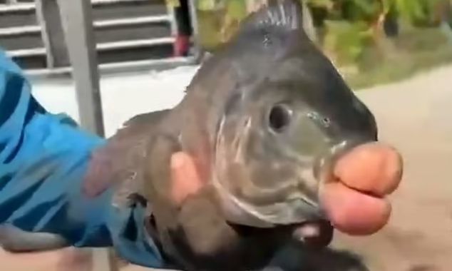 Μια ομάδα ψαράδων έπιασε το ψάρι τιλάπια με τα διογκωμένα “χείλη” στο Nakhon Pathom της Ταϊλάνδης στις 9 Ιανουαρίου.