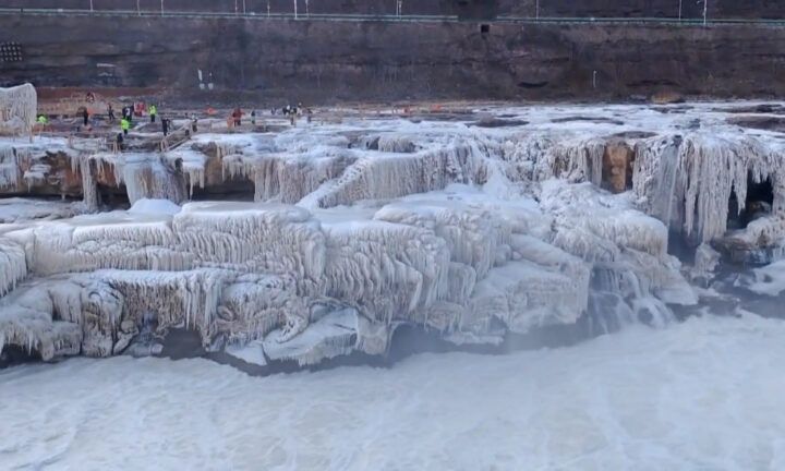 Η κατακόρυφη πτώση της θερμοκρασίας στην επαρχία Shanxi της βόρειας Κίνας, ο καταρράκτης Hukou στον Κίτρινο ποταμό σχημάτισε πρόσφατα ένα μοναδικό σκηνικό με πολλά τμήματά του να παγώνουν.