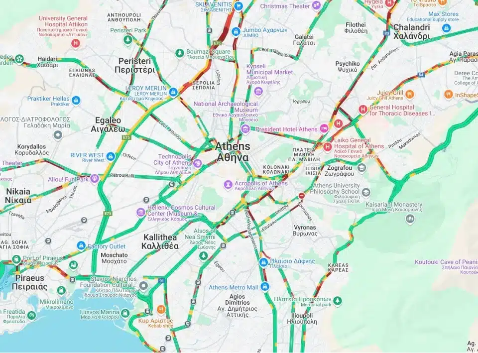 Κίνηση τώρα: Πρωινή ταλαιπωρία για τους οδηγούς στους δρόμους της Αθήνας καθώς