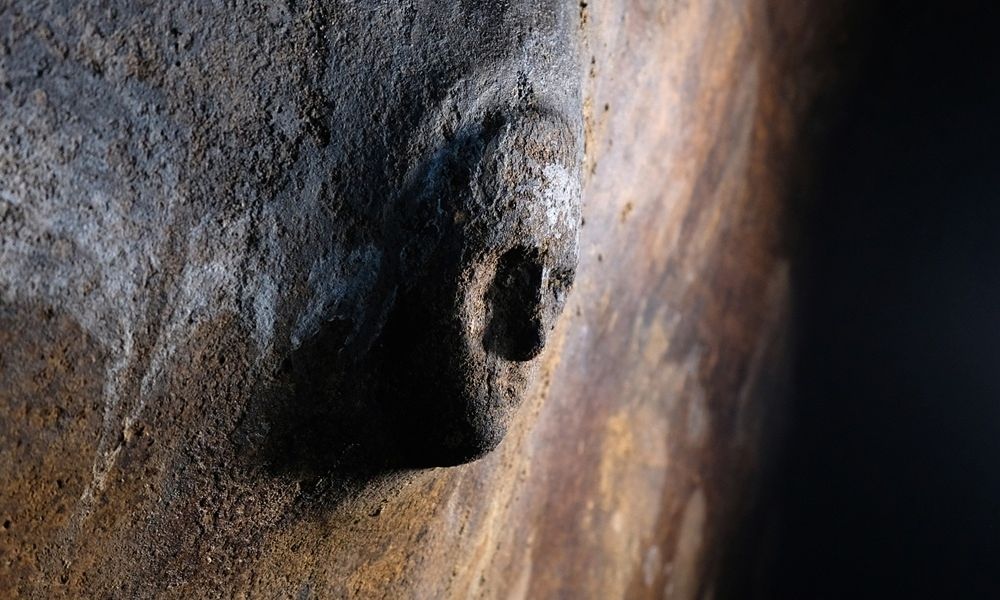 Μετά από προσεκτικότερη εξέταση μιας από τις δεξαμενές, οι αρχαιολόγοι ανακάλυψαν ένα ανάγλυφο ανθρώπινο πρόσωπο στον τοίχο.