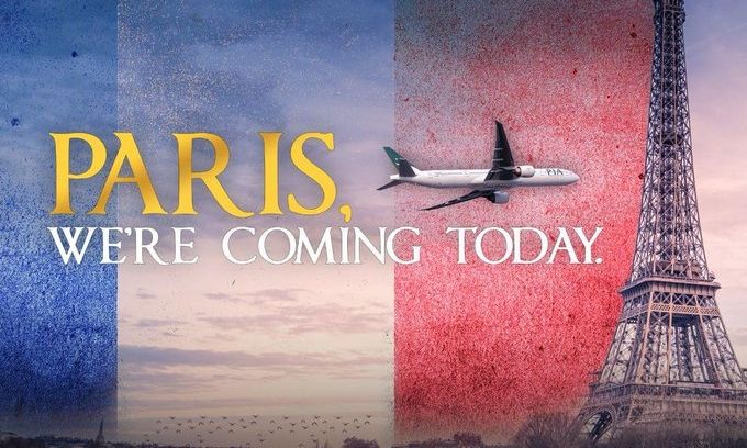 Η Pakistan International Airlines ανήρτησε στα μέσα κοινωνικής δικτύωσης μια εικόνα στην οποία φαίνεται ένα αεροσκάφος να πετά προς τον Πύργο του Άιφελ με τη λεζάντα «Παρίσι, φθάνουμε σήμερα»