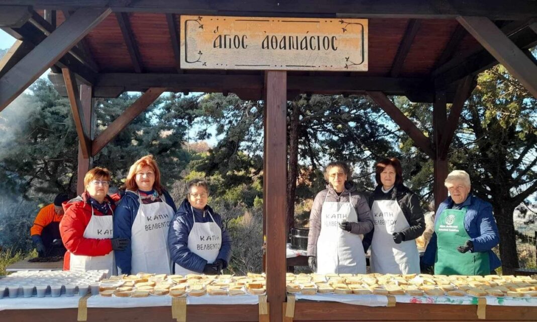 Στις γραφικές πλαγιές των Πιερίων, 2 χιλιόμετρα δεξιά από το Στάδιο Βελβεντού ο Δήμος Βελβεντού, το ΚΑΠΗ και εθελοντές πολίτες θα προσφέρουν λουκάνικα και τοπικό κρασί στους επισκέπτες. Οι βελβεντινοί συνήθως «πιάνουν» από νωρίς μέρος με τις παρέες τους στις γραφικές πλαγιές γύρω από το εξωκλήσι, όπως γράφει το e-ptolemeos.gr.