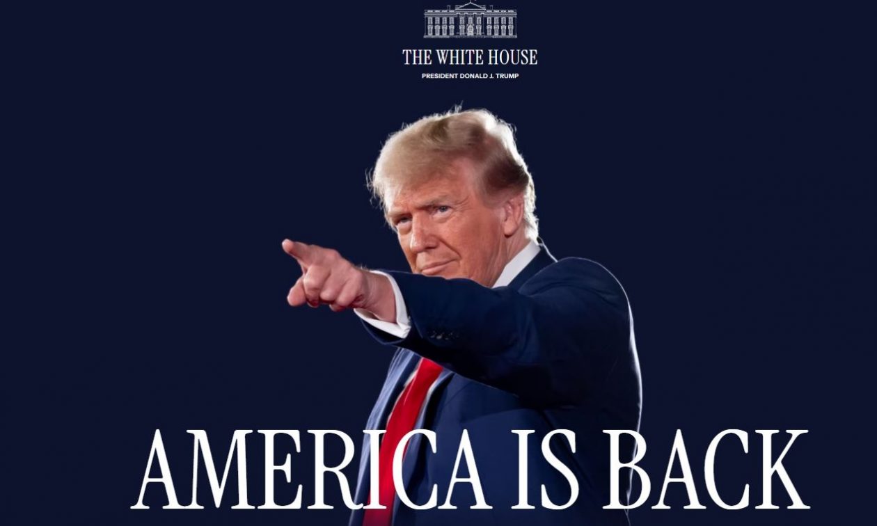 Μέσα σε λίγα λεπτά από την ανάληψη των καθηκόντων του Τραμπ, ο επίσημος ιστότοπος του Λευκού Οίκου ενημερώθηκε με μια νέα αρχική σελίδα με την εικόνα του και το μήνυμα, «Η Αμερική επέστρεψε».