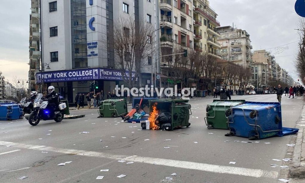 Νέα ένταση προκλήθηκε μετά την ολοκλήρωση της πορείας που έγινε στη Θεσσαλονίκη για το δυστύχημα στα Τέμπη.