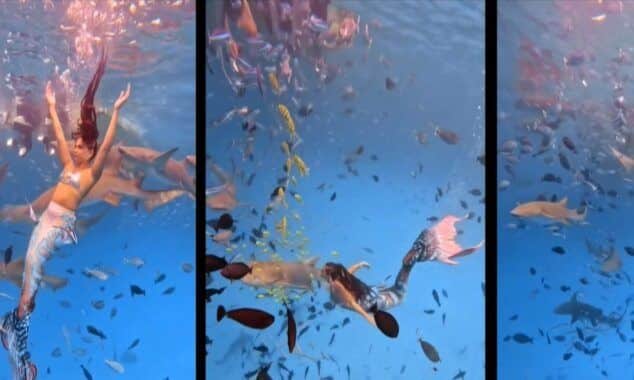 Φορώντας μια στολή γοργόνας, η θεσσαλονικιά η Χαρίκλεια Μαρή κολυμπάει ανάμεσα σε καρχαρίες και σαλάχια στις Μαλδίβες.