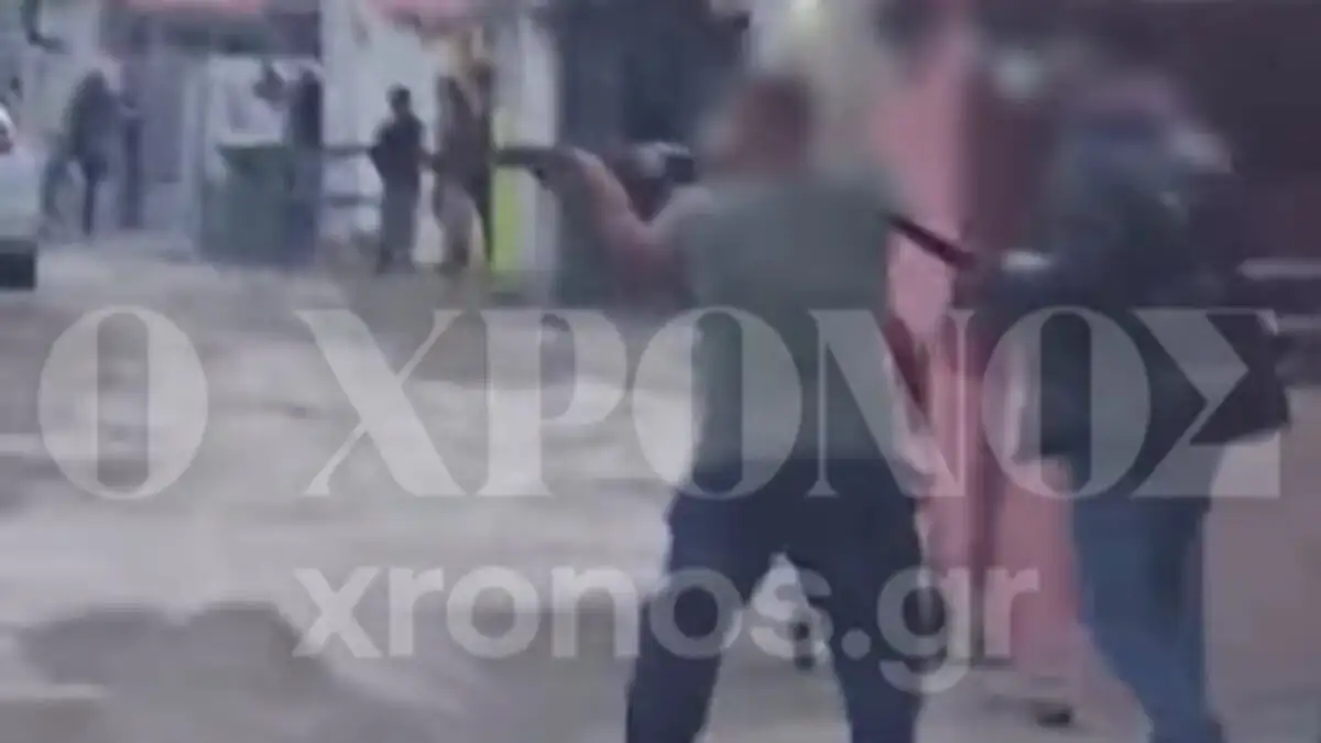 Βίντεο που δημοσιεύθηκε από το xronos.gr καταγράφει τη στιγμή που δύο άνδρες, φερόμενοι ως πατέρας και γιος, πραγματοποιούν ένοπλη επίθεση εναντίον τριών ατόμων με τους οποίους φέρονται να είχαν διαφορές.