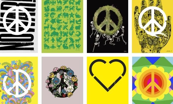 Δέκα καλλιτέχνες επανασχεδιάζουν το εμβληματικό σύμβολο της ειρήνης με τις εκτυπώσεις να πωλούνται με στόχο να συγκεντρωθούν χρήματα για φιλανθρωπικούς σκοπούς. Τα έργα κυμαίνονται από γεωμετρικά και πνευματώδη έως χειροποίητα και «εσωστρεφή», μεταξύ άλλων από τους Morag Myerscough και Anthony Burrill.