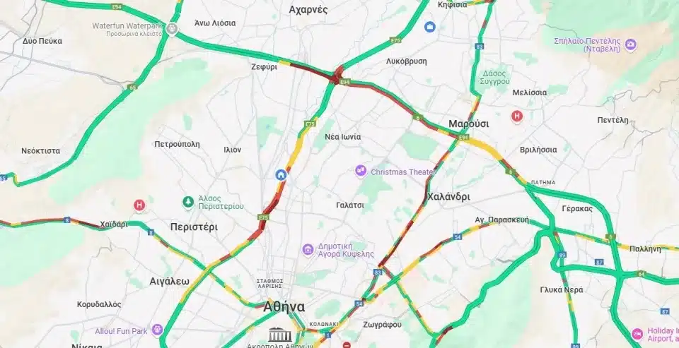 Αυξημένη κίνηση καταγράφεται και στην Αττική Οδό, όπου οι καθυστερήσεις κυμαίνονται από 5 έως 15 λεπτά, ανάλογα με το σημείο διέλευσης.