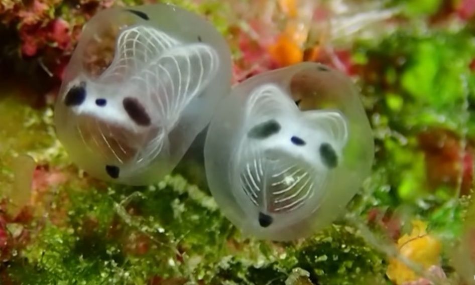 Αυτά τα θαλάσσια ασπόνδυλα τρέφονται με φυτοπλαγκτόν αφού το φιλτράρουν και ζουν σε βάθος 15-20 μέτρων. Αυτό όμως που το κάνει ξεχωριστό είναι η μοναδική του εμφάνιση: το διάφανο σώμα του παρουσιάζει ένα δίκτυο λευκών αιμοφόρων αγγείων που μοιάζει με σκελετό, ενώ στο κεφάλι του ξεχωρίζουν μαύρες κηλίδες που μοιάζουν με τα μάτια και τη μύτη ενός πάντα.