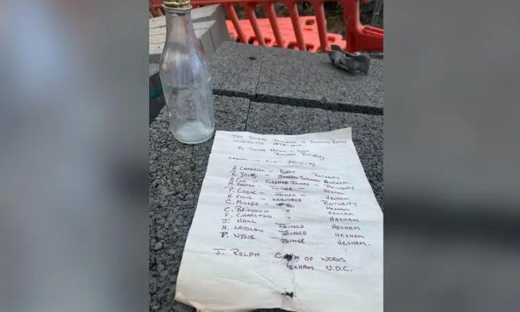 Ο Anthony Gibbons, από το Νιούκαστλ, επικεφαλής του συνεργείου δήλωσε ότι όλοι στην ομάδα “αισθάνθηκαν αρκετά υπερήφανοι και τιμημένοι” που βρήκαν το σημείωμα. Το γυάλινο μπουκάλι Schweppes το βρήκε ένας από τους οικοδόμους κρυμμένο στην κοιλότητα ενός εξωτερικού τοίχου.