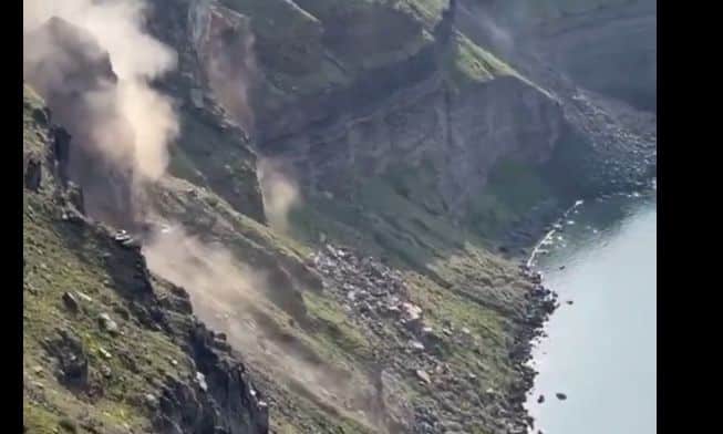 Χωρίς σταματημό οι σεισμικές δονήσεις στις Κυκλάδες, προκάλεσαν κατολίσθηση στην Καλντέρα της Σαντορίνης, όπως κατέγραψε σε βίντεο η σελίδα Forecast Weather Greece.