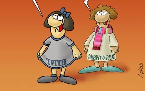 Ο γνωστός σκιτσογράφος Αρκάς, με το χαρακτηριστικό του χιούμορ, μας χαρίζει ακόμα ένα σκίτσο που αποτυπώνει την αλληλεπίδραση των ημερών της εβδομάδας με μοναδικό τρόπο.