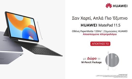 Η Huawei έφερε στην ελληνική αγορά το HUAWEI MatePad 11.5, ένα καινοτόμο tablet που συνδυάζει κορυφαία τεχνολογία, εντυπωσιακή PaperMatte οθόνη και προηγμένα εργαλεία παραγωγικότητας, προσφέροντας μια πολυδιάστατη εμπειρία χρήσης για επαγγελματίες, φοιτητές και δημιουργικούς χρήστες.
