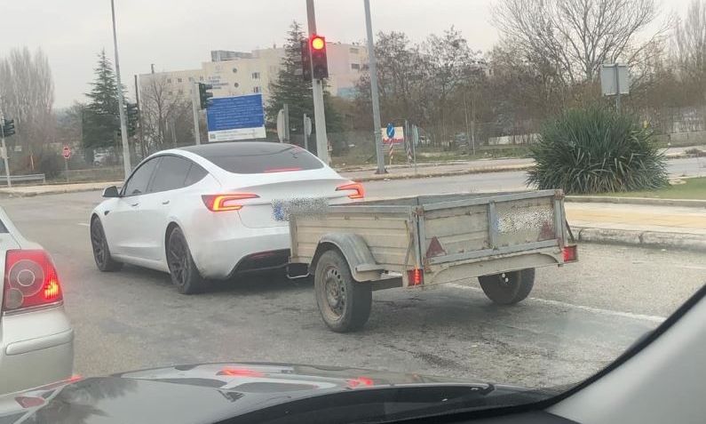 Σέρρες: Viral έγινε Tesla με κοτσαδόρο και τρέιλερ