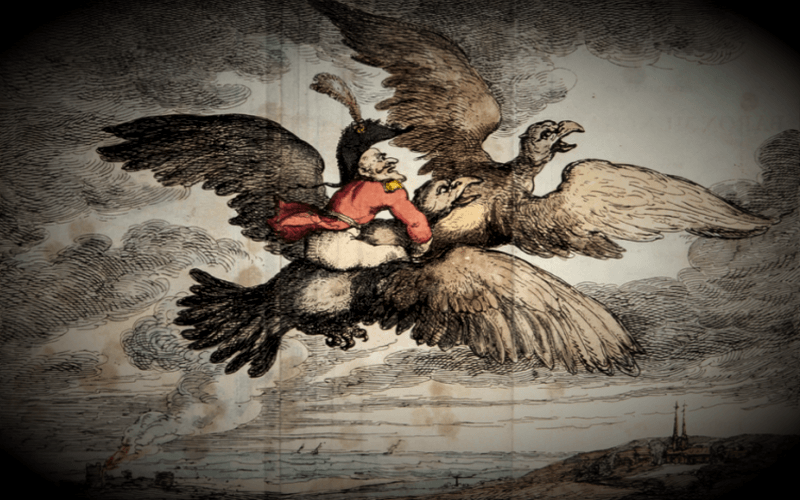 Ο Βαρόνος συνειδητοποίησε ότι το φοβερό δίλημμα, που του παρουσιαζόταν, ήταν να αποφασίσει γρήγορα ποιο από τα δυο θηρία θα τον κατασπάραζε. Χωρίς να το σκεφτεί παραπάνω, έριξε το κορμί του στον γκρεμό. Χίμηξε και το λιοντάρι ξοπίσω του και καταγκρεμίστηκε κι εκείνο από τη φόρα που είχε πάρει, ενώ το κεφάλι του σφηνώθηκε μέσα στο ανοιχτό στόμα του κροκόδειλου.