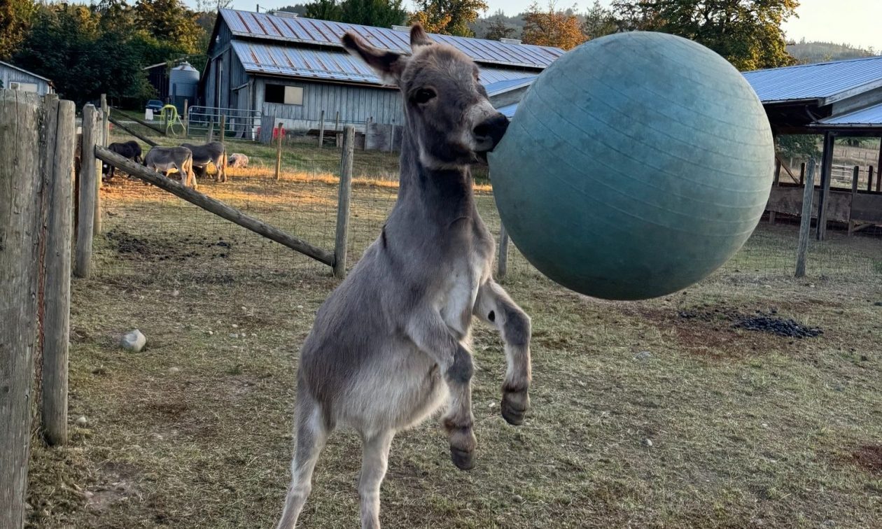 Ένα μοναχικό γαϊδουράκι από ένα καταφύγιο του Καναδά «ερωτεύτηκε» μια μπάλα γιόγκα. Μια μέρα όμως η μπάλα έσκασε μέχρι που δέχτηκε δεκάδες μπάλες από πολίτες ως δωρεά στο καταφύγιο.