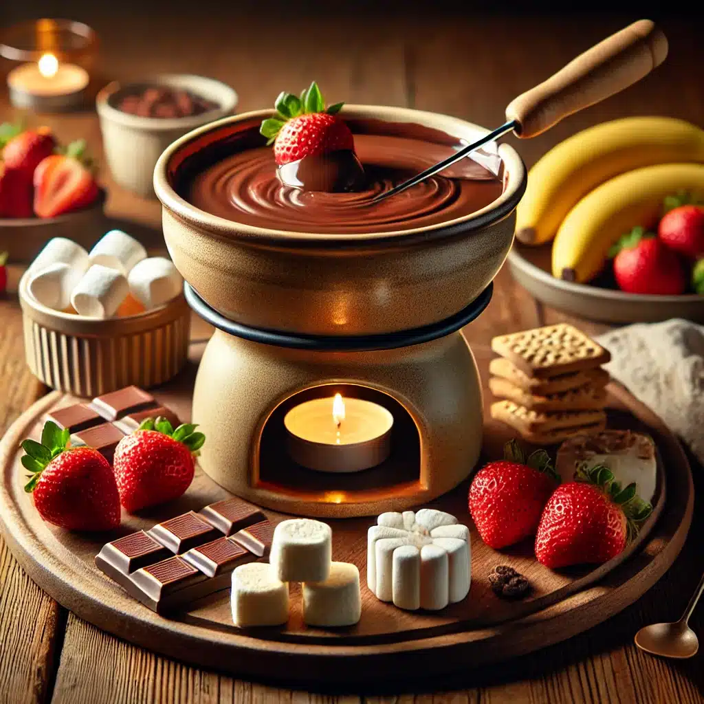 Το φοντί σοκολάτας είναι η τέλεια επιλογή για να προσφέρετε μια γλυκιά νότα σε μια ρομαντική βραδιά ή μια φιλική συγκέντρωση. Η κρεμώδης σοκολάτα συνδυάζεται υπέροχα με φρέσκιες φράουλες, δημιουργώντας ένα γλυκό που θα ικανοποιήσει κάθε γούστο.