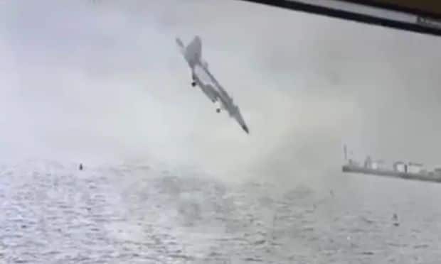 Ένα συγκλονιστικό βίντεο δείχνει το αεροσκάφος να βουτάει στο νερό με μεγάλη ταχύτητα στέλνοντας στον ουρανό ένα μεγάλο σύννεφο νερού και «λάσπης».