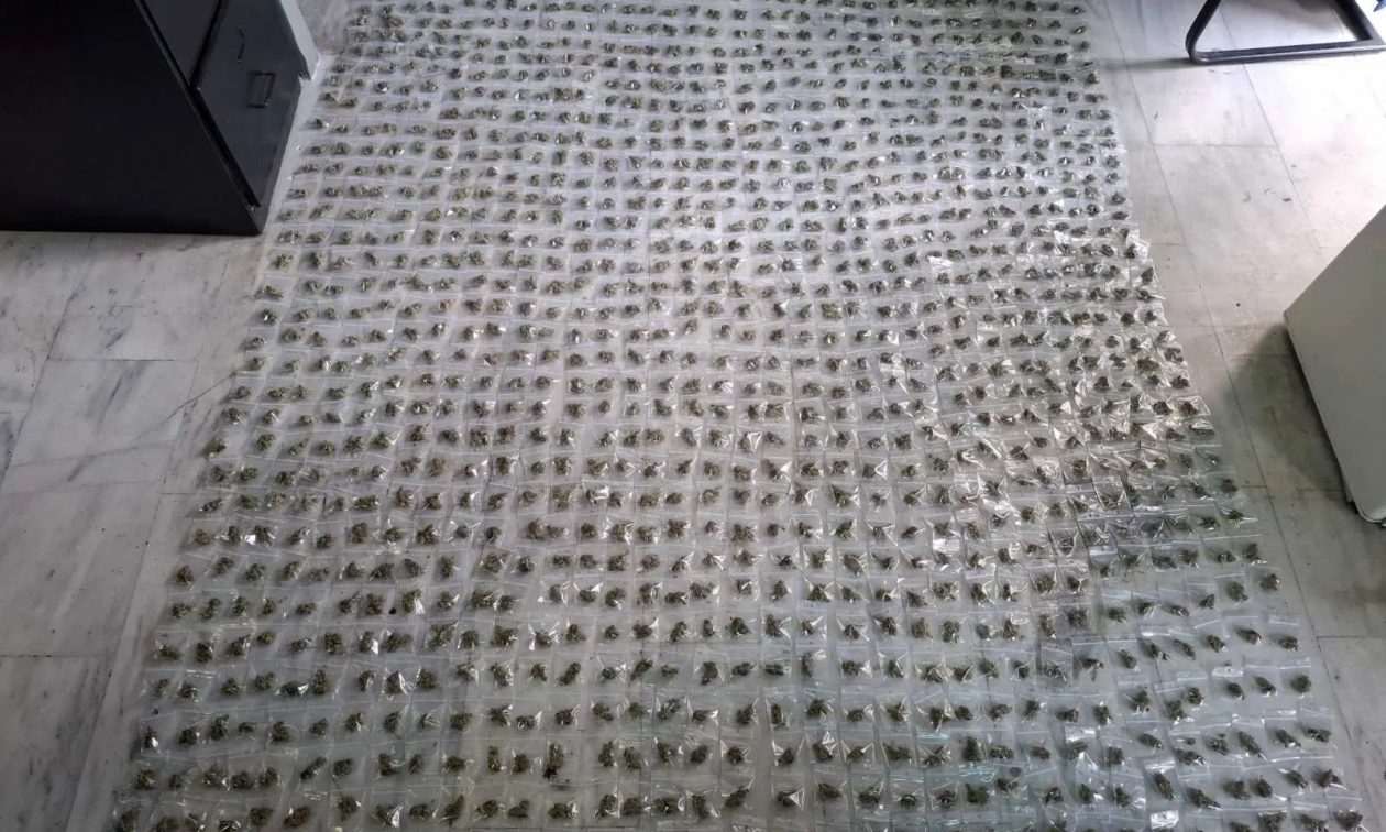 Ειδικότερα, σύμφωνα με την ΕΛΑΣ, αστυνομικοί της Ομάδας ΔΙΑΣ που κλήθηκαν να επέμβουν για συμβάν επεισοδίου εντός σπιτιού, αντιλήφθηκαν έντονη οσμή ναρκωτικών ουσιών και με τη συνδρομή αστυνομικών του Τμήματος Δίωξης και Εξιχνίασης Εγκλημάτων Αγίου Παντελεήμονα εντοπίστηκαν συνολικά και κατασχέθηκαν 1.265 συσκευασίες, περιέχουσες συνολικά 1 κιλό και 815 γραμμ. ακατέργαστης κάνναβης, έτοιμες προς διακίνηση.