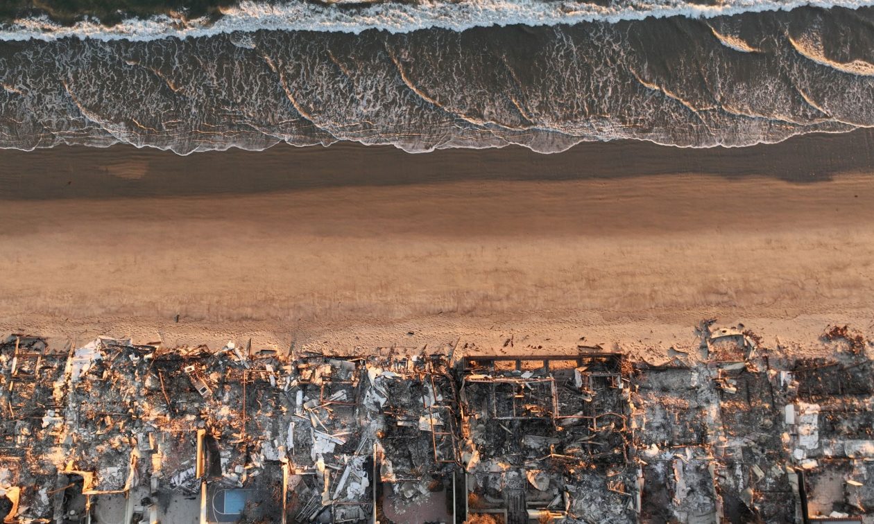 Ιδιοκτησίες που καταστράφηκαν από την πυρκαγιά Palisades φαίνονται στην ακτογραμμή της Καλιφόρνια