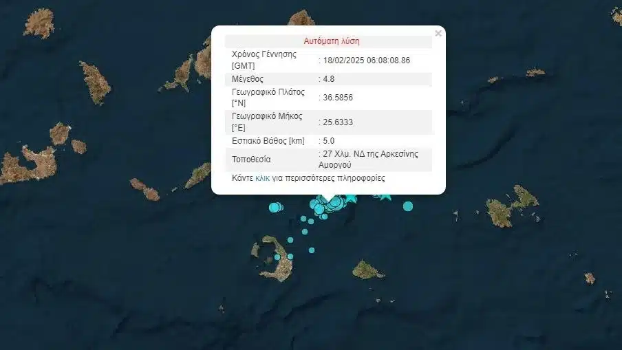 Το Εργαστήριο Σεισμολογίας (ΕΣ) του ΕΚΠΑ δημοσιοποίησε νέα στοιχεία για τη σεισμική δραστηριότητα στη θαλάσσια περιοχή μεταξύ Σαντορίνης και Αμοργού.
