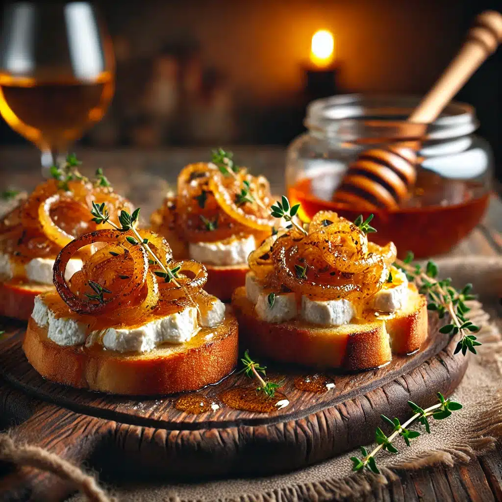 Οι μπρουσκέτες είναι ένας από τους πιο γρήγορους και απολαυστικούς τρόπους για να φτιάξετε ένα εντυπωσιακό σνακ ή ορεκτικό. Αυτή η εκδοχή συνδυάζει την τραγανότητα του φρυγανισμένου ψωμιού, τη γλυκύτητα των καραμελωμένων κρεμμυδιών και την κρεμώδη γεύση του κατσικίσιου τυριού. Ένα απλό αλλά γευστικό πιάτο, ιδανικό για κρασί ή συνοδευτικό σε ένα γιορτινό τραπέζι!