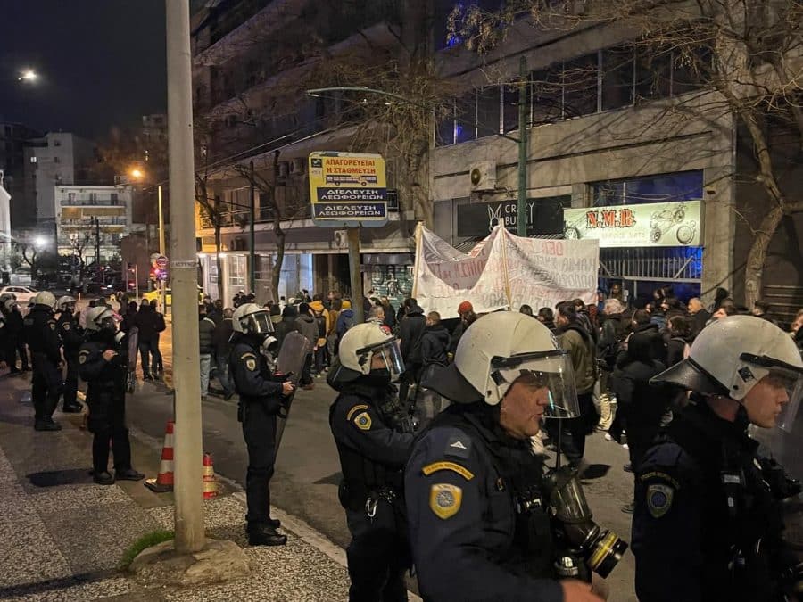 Συγκεκριμένα οι αστυνομικές δυνάμεις τους κατεύθυναν προς το στενό της οδού Πετμετζά, όπου συνεχίζεται η διαμαρτυρία