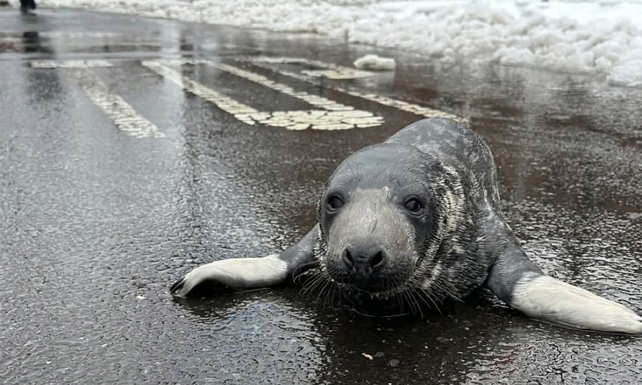 Μια υποσιτισμένη μικρή φώκια πλέον τρώει όσα ψάρια θα ήθελε σε ένα ενυδρείο, αφού διασώθηκε από τους δρόμους του Κονέκτικατ των ΗΠΑ κοντά στο Πανεπιστήμιο Γέιλ.