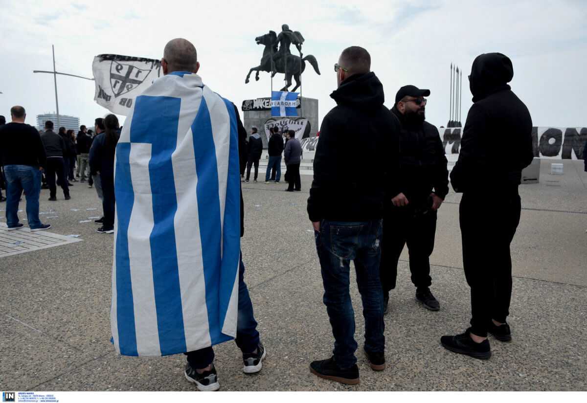 Το πρωί της ίδιας ημέρας όμως, οι φίλοι της ομάδας συγκεντρώθηκαν μπροστά στο άγαλμα του Μεγάλου Αλεξάνδρου -στην παραλία της Θεσσαλονίκης- για να διαμαρτυρηθούν για τη συμφωνία των Πρεσπών.