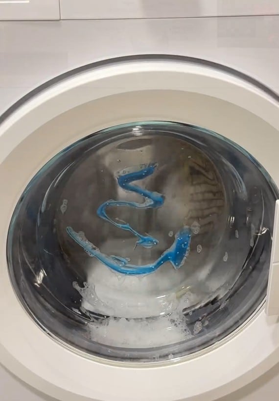 Αν και είναι αντισυμβατικό, το hack προτείνει την εφαρμογή οδοντόκρεμας στο εσωτερικό της πόρτας του πλυντηρίου. Ακολούθησα το παράδειγμά, αν και δεν ήμουν αισιόδοξη για αυτό το βήμα.
