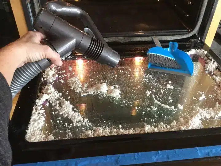 Καθάρισε τα υπολείμματα με ηλεκτρική σκούπα. Θα μπορούσατε να χρησιμοποιήσετε μικρο σκουπάκι κουζίνας. Προσοχή, αν έχετε σακούλα στην ηλεκτρική σας σκούπα για να μην βουλώσει από τα υπολείμματα.