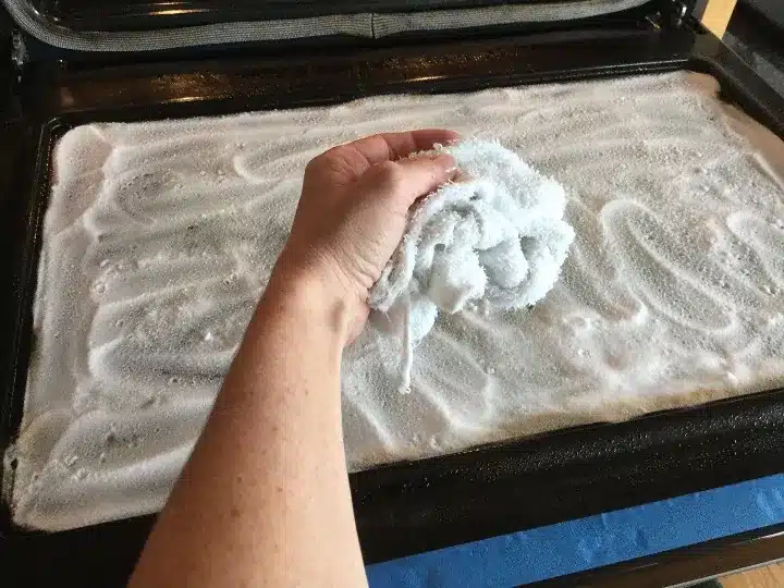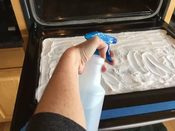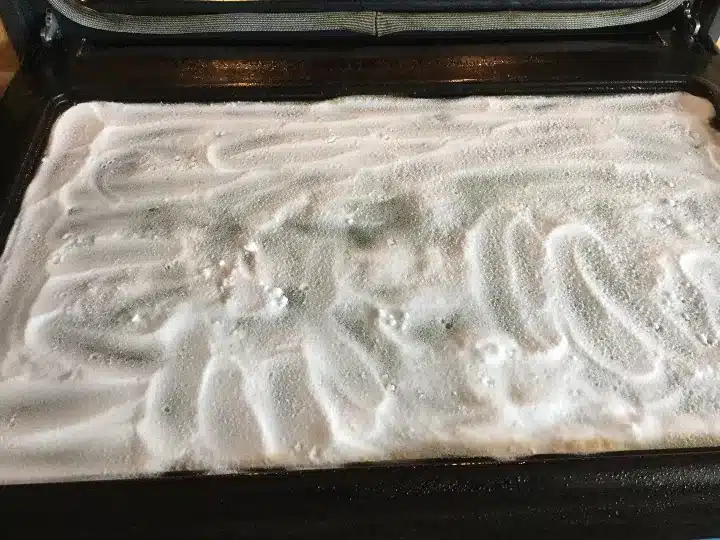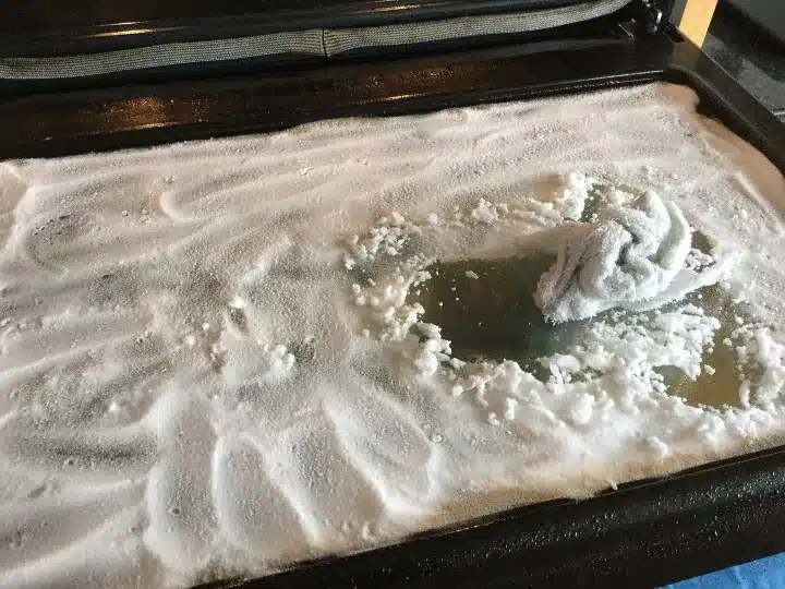 Και εδώ είναι η πόρτα του φούρνου, έτοιμη να καθαριστεί με απολιπαντικό.