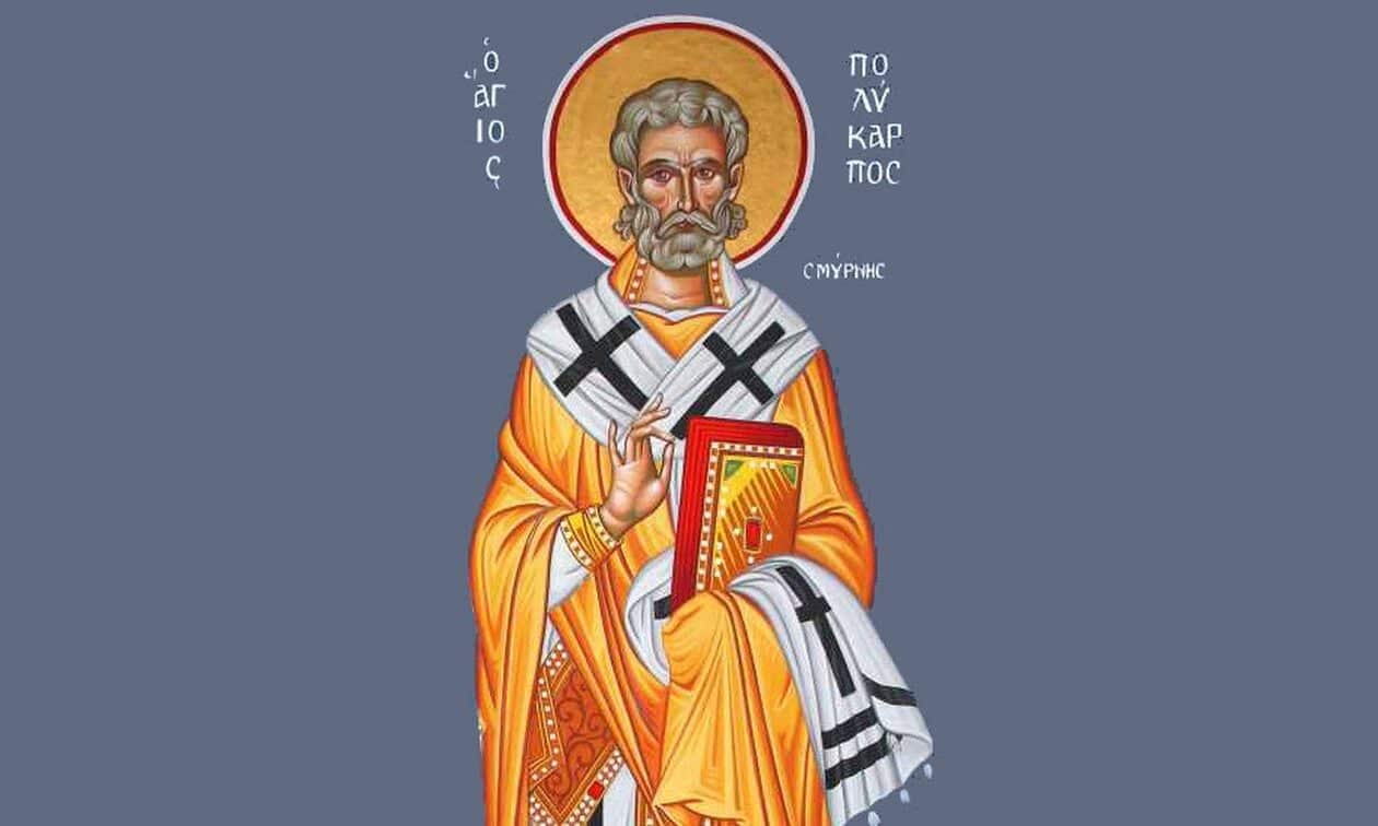 Σύμφωνα με τον συναξαριστή, ο Άγιος Πολύκαρπος (80 – 23 Φεβρουαρίου 167) ήταν επίσκοπος Σμύρνης στο δεύτερο αιώνα μ.Χ.. Βρήκε μαρτυρικό θάνατο στις 23 Φεβρουαρίου του 167 και αναγνωρίστηκε ως άγιος από την Ορθόδοξη και την Καθολική, την Λουθηρανική και την Αγγλικανική εκκλησία.