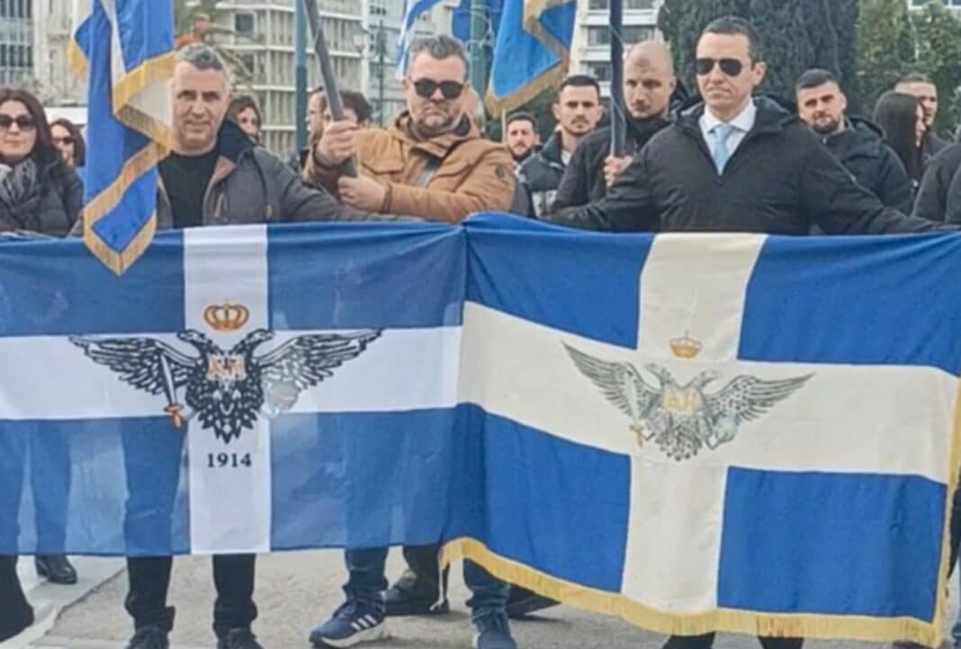 Οι συγκεντρωμένοι οπαδοί του Ηλία Κασιδιάρη στο Σύνταγμα κρατούσαν πανό, με ένα εξ αυτών να αναφέρει «από την Αθήνα μέχρι τα Τίρανα γη ελληνική». Ταυτόχρονα, διμοιρία των ΜΑΤ είχε κυκλώσει αναρχικούς που βρίσκονταν απέναντι, από την πλευρά της πλατείας Συντάγματος, πραγματοποιώντας συγκέντρωση για τα Τέμπη.