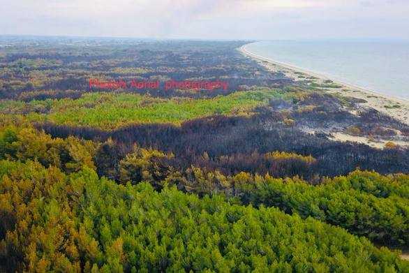 Μέσα από τις φωτογραφίες και το βίντεο του Δημήτρη Λαμπρόπουλου και της Photofx, μάλλον δικαιώνονται οι εκτιμήσεις του Φορέα Διαχείρησης Υγρότοπων Κοτυχίου Στροφυλιάς που μιλούσαν για 1.500 στρέμματα τουλάχιστον καμένης έκτασης.