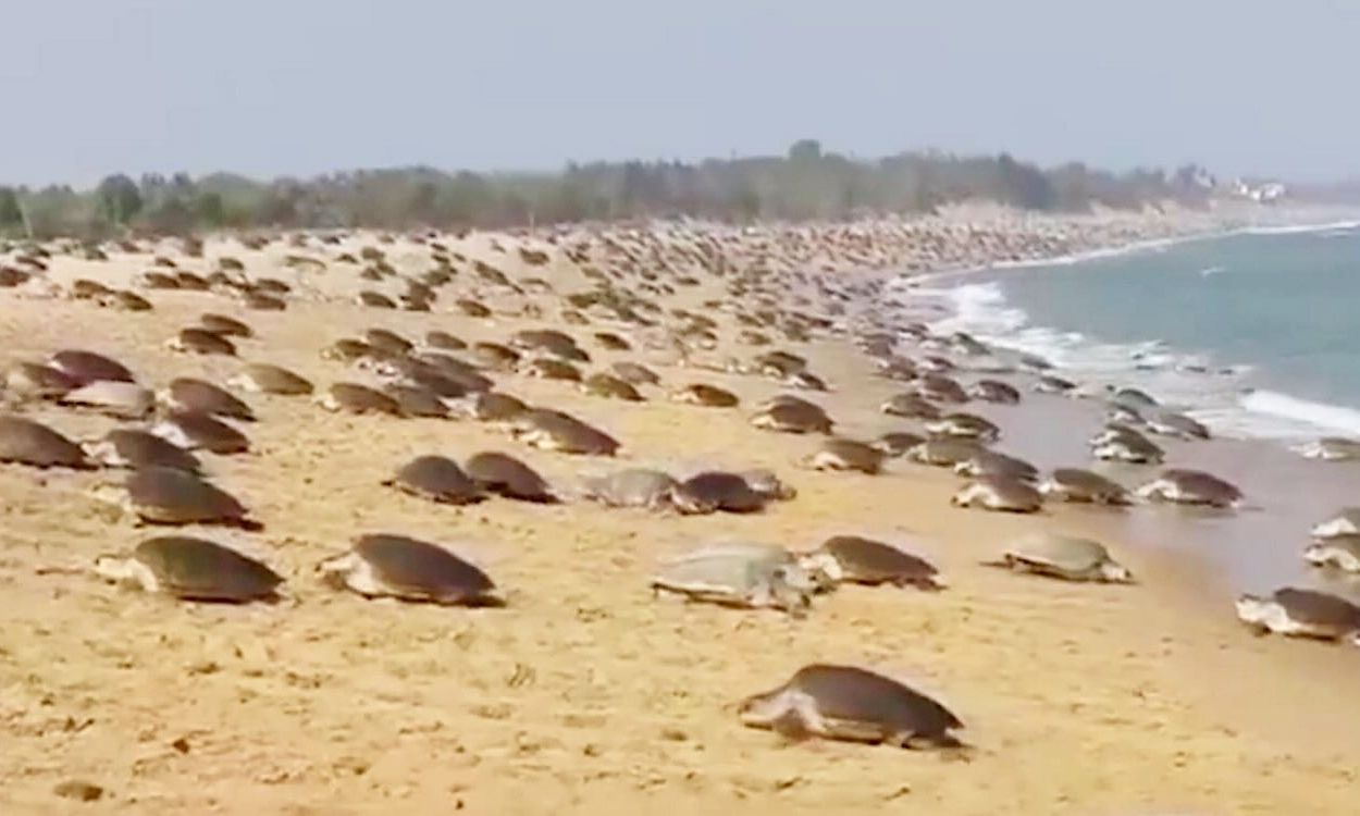 Ένα απίστευτο βίντεο δείχνει μια φαινομενικά ατελείωτη έκταση παραλίας στην Οντίσα, με πλήθος χελωνών να βγαίνουν στην ακτή κοντά στις εκβολές του ποταμού Rushikulya.