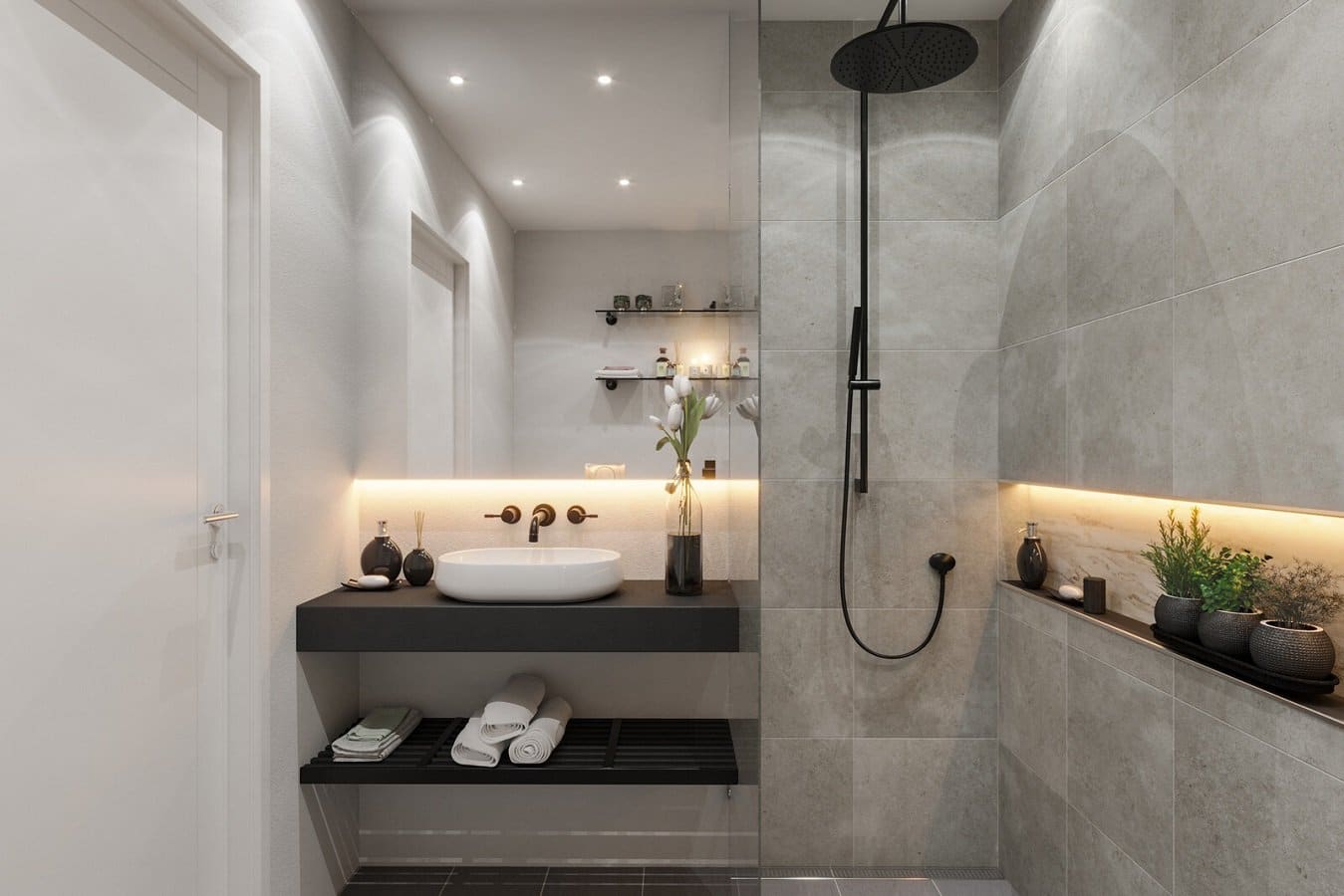 - Αρωματικά κεριά: Για χαλαρωτική ατμόσφαιρα τύπου spa.