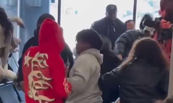 Στα βίντεο του καυγά νεαροί ακούγονται να φωνάζουν ο ένας στον άλλο καθώς χτυπούν έξω. Οι περισσότεροι φορούσαν κουκούλες και αθλητικές φόρμες και αρκετοί φορούσαν μάσκες προσώπου.