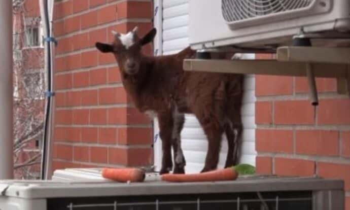Οι πυροσβέστες χρησιμοποίησαν λιχουδιές όπως καρότα και μαρούλια για να παρασύρουν την κατσίκα σε ένα κοντινό μπαλκόνι