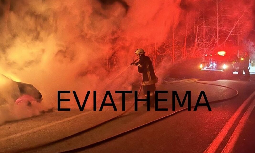 Αυτοκίνητο τυλίχθηκε στις φλόγες στην Εύβοια – Καλά στην υγεία του ο οδηγός