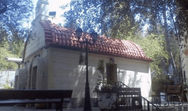 Μέσα σε ένα καταπράσινο τοπίο με παγκάκια, με τα δέντρα να ρίχνουν τη δροσερή σκιά τους, προβάλλει το μικρό ξωκκλήσι.