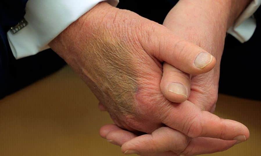 Μία τεράστια μελανιά που εμφανίστηκε στο χέρι του Ντόναλντ Τραμπ πυροδότησε φήμες για την υγεία του, με τον Λευκό Οίκο να την αποδίδει στις πολλές χειραψίες
