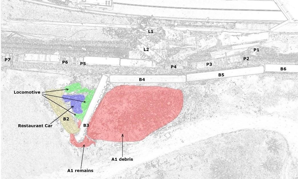Το πόρισμα αναφέρει ότι «τα περισσότερα από τα θύματα αυτού του δυστυχήματος οφείλονται στις επιπτώσεις της σύγκρουσης των δύο τρένων. Τα σιδηροδρομικά οχήματα δεν είναι σχεδιασμένα για σύγκρουση με ταχύτητα άνω των 36 km/h».