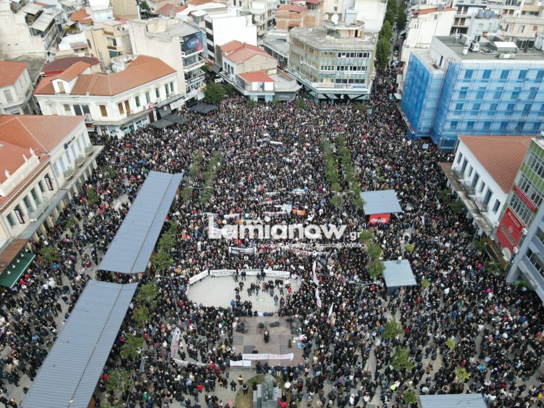 Περισσότεροι από 8.500 πολίτες με αστυνομικές πηγές (για άλλους 10.000 σύμφωνα) έχουν κατακλίσει κάθε σημείο του κέντρο της πόλης και διαδηλώνουν ειρηνικά χωρίς κανένα παρατράγουδο προκειμένου να αποδοθεί δικαιοσύνη στην τραγωδία των τεμπών δείτε εικόνες από το drone του lamianow.gr