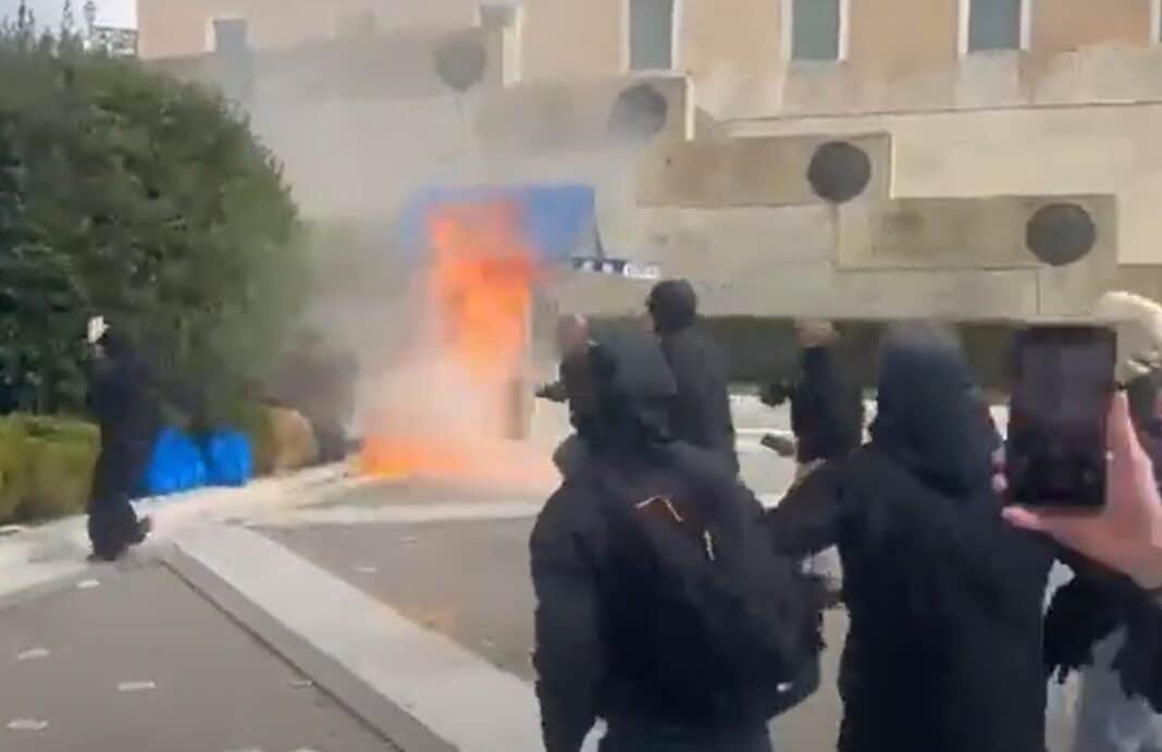 Σύνταγμα: Κουκουλοφόροι καίνε το φυλάκιο των Ευζώνων της Προεδρικής Φρουράς [εικόνες] 28 Φεβρουαρίου 2025 13:19 FacebookTwitterTelegramViberWhatsAppLinkedinEmail Σοβαρά επεισόδια σημειώθηκαν στο Σύνταγμα μετά το τέλος της πορεία για το δυστύχημα των Τεμπών. Ομάδα κουκουλοφόρων επιτέθηκε στο μνημείο του Άγνωστου Στρατιώτη και στη συνέχεια έκαψαν το φυλάκιο των Ευζώνων. FacebookTwitterTelegramViberWhatsAppLinkedinEmail Προηγούμενο άρθροΤέμπη: Πώς θα αποχωρήσει το πλήθος κόσμου από το κέντρο της Αθήνας – Τι ισχύει για Μετρό και ΗΣΑΠΕπόμενο άρθροΠακιστάν: Έξι νεκροί από βόμβα σε ισλαμικό ινστιτούτο – Εκπαίδευε Ταλιμπάν Μπορεί να σας αρέσουν Αστυνομικό Εξάρχεια: Εκτόξευσαν μολότωφ κατά δυνάμεων των ΜΑΤ – Απάντησαν με κρότου-λάμψης 20 Δεκεμβρίου 2025 02:59 Αστυνομικό Νέα Φιλαδέλφεια: Νεκρός μοτοσικλετιστής έπειτα από σύγκρουση με τρόλεϊ 19 Δεκεμβρίου 2025 08:03 Αστυνομικό Νέα επίθεση μεταξύ μαθητριών σε Γυμνάσιο: Συνελήφθη 13χρονη για βίαιη επίθεση 18 Δεκεμβρίου 2025 11:59 Αφήστε ένα μήνυμα Σχόλιο: εισάγετε το σχόλιό σας! Όνομα: παρακαλώ εισάγετε το όνομά σας εδώ Email: έχετε εισάγει εσφαλμένη διεύθυνση ηλεκτρονικού ταχυδρομείου! παρακαλώ εισάγετε εδώ την ηλεκτρονική σας διεύθυνση Ιστοσελίδα: αποθηκεύστε το όνομα, το ηλεκτρονικό ταχυδρομείο και τον ιστότοπό μου σε αυτό το πρόγραμμα περιήγησης για την επόμενη φορά που θα σχολιάσω.